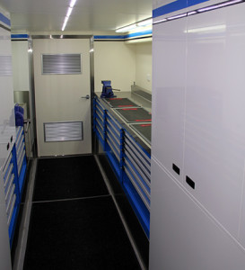 Our motorsport trailers are designed to meet your specific needs for vehicle transportation, workshop facilities, merchandising, and team accommodations. They include overnight sleeping areas, toilet, shower, and change facilities, as well as two levels with a walk-through design. For easy vehicle loading, the trailers are equipped with tail-gate lifters, ensuring a seamless experience for all your race weekend requirements.